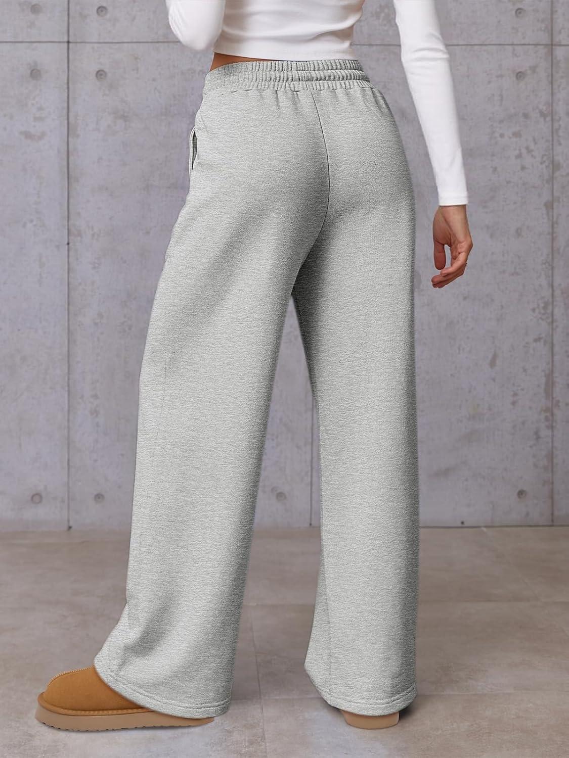 ATHMILE Womens Wide Leg Sweatpants High Waisted Baggy Pants Fashion Teen Girl Drawstring Athletic Joggers(Fleece-grey)