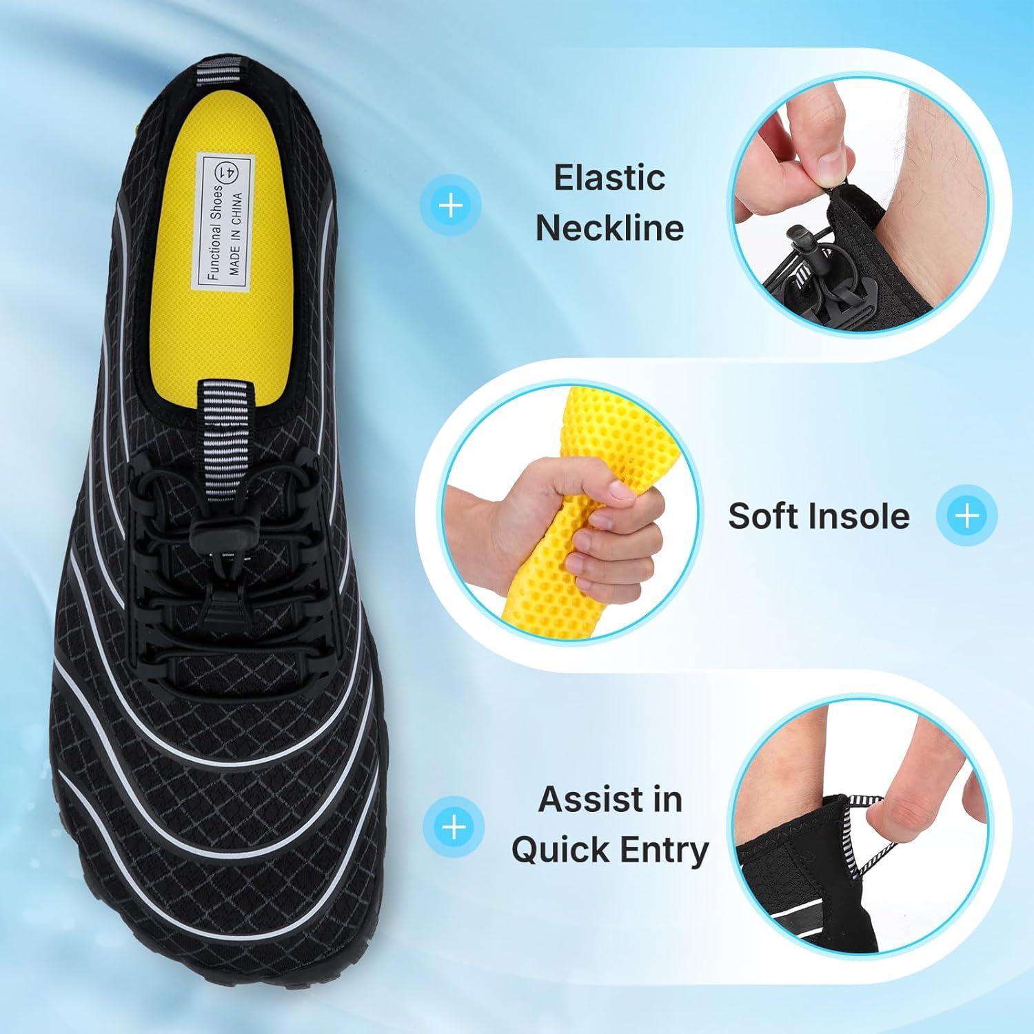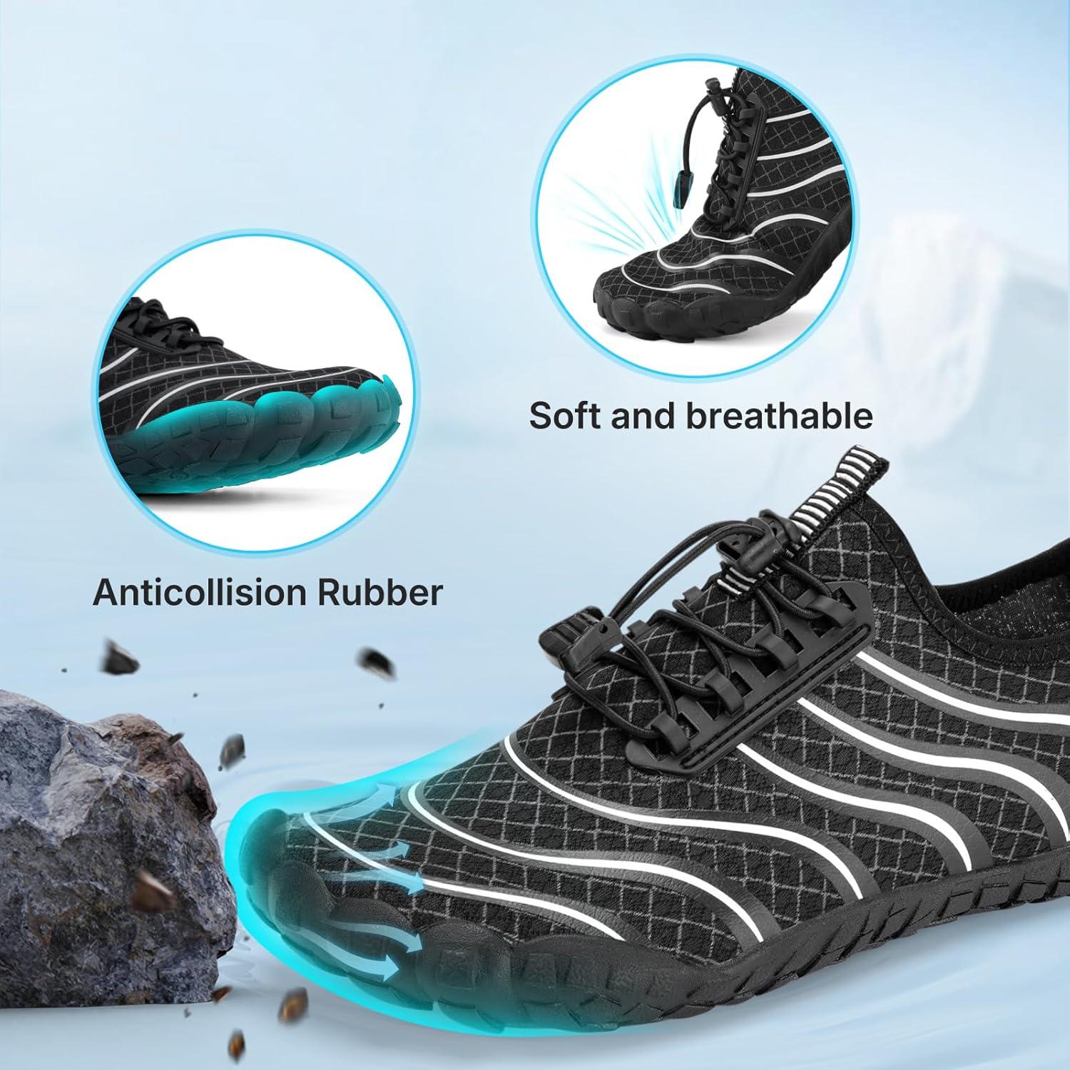 Barefoot Water Shoes Women Men Adult Hiking Swim Beach River Pool Hike Guarding Shoes Aqua Socks Protective Comfort Wide Toe Box Width Rock Climbing Vacation Outdoor 2025 New(Black-026)