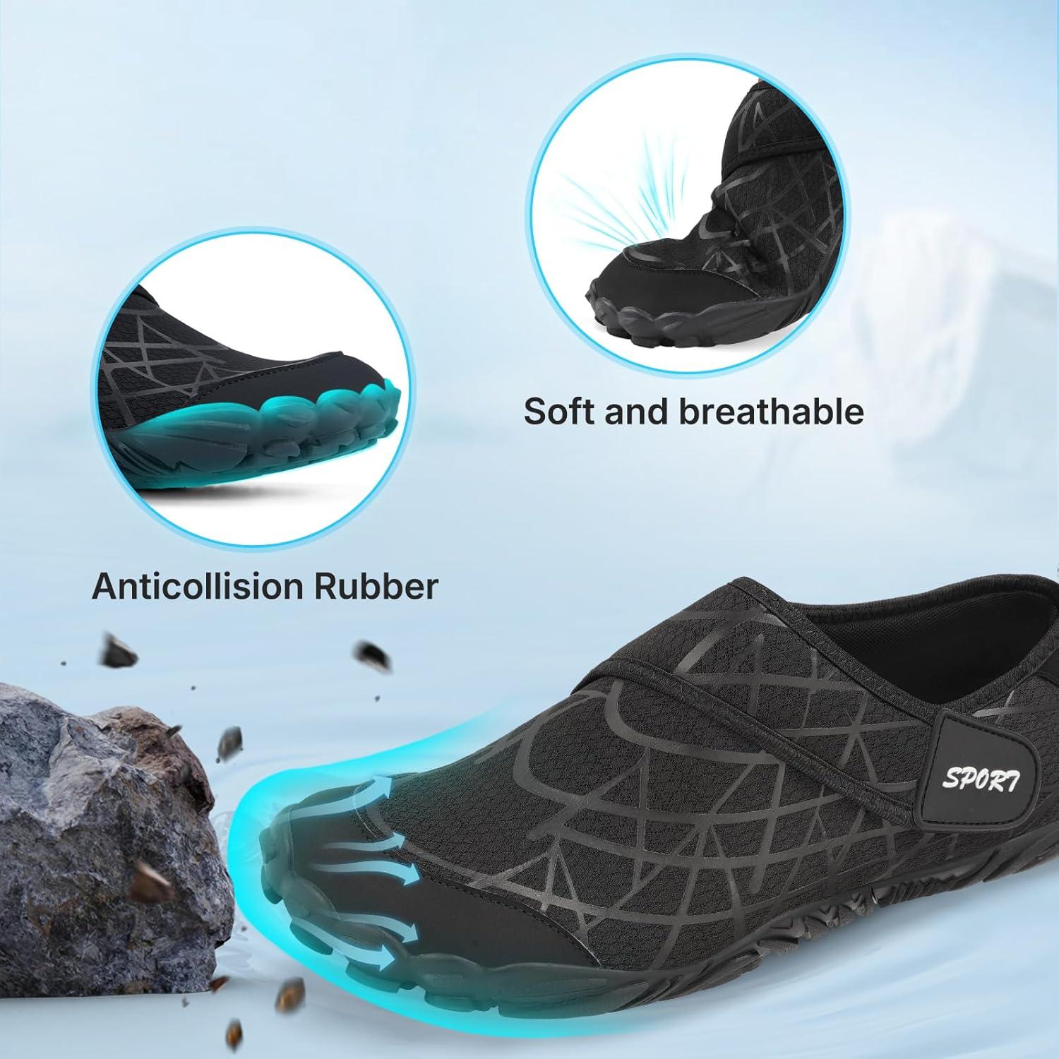 Barefoot Water Shoes Women Men Adult Hiking Swim Beach River Pool Hike Guarding Shoes Aqua Socks Protective Comfort Wide Toe Box Width Rock Climbing Vacation Outdoor 2025 New(Black-045)